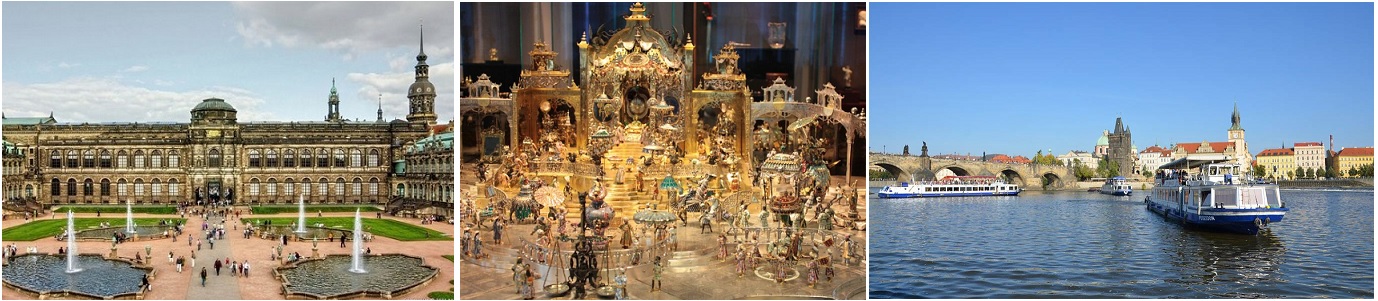 «Столица искусств Германии» Вашему вниманию предложит множество знаменитых музеев с выдающимися экспонатами. Бывшая резиденция саксонских королей гордится величественными зданиями: Дворец-резиденция с мозаикой «Шествие королей», Албертинум, католическая придворная церковь, восстановленная Фрауенкирхе, знаменитая Земпер-опера. В Дрезденском Цвингере располагается картинная галерея с известной картиной Рафаэля «Сикстинская мадонна», Оружейная палата и музей-сокровищница «Зелёные своды», наиболее известными экспонатами которого являются Золотой кофейный сервиз и композиция «Двор великого Могула в Дели», которая составлена из 137 раскрашенных разноцветной эмалью золотых фигур, и украшена более 5000 бриллиантами, рубинами, изумрудами и жемчужинами.